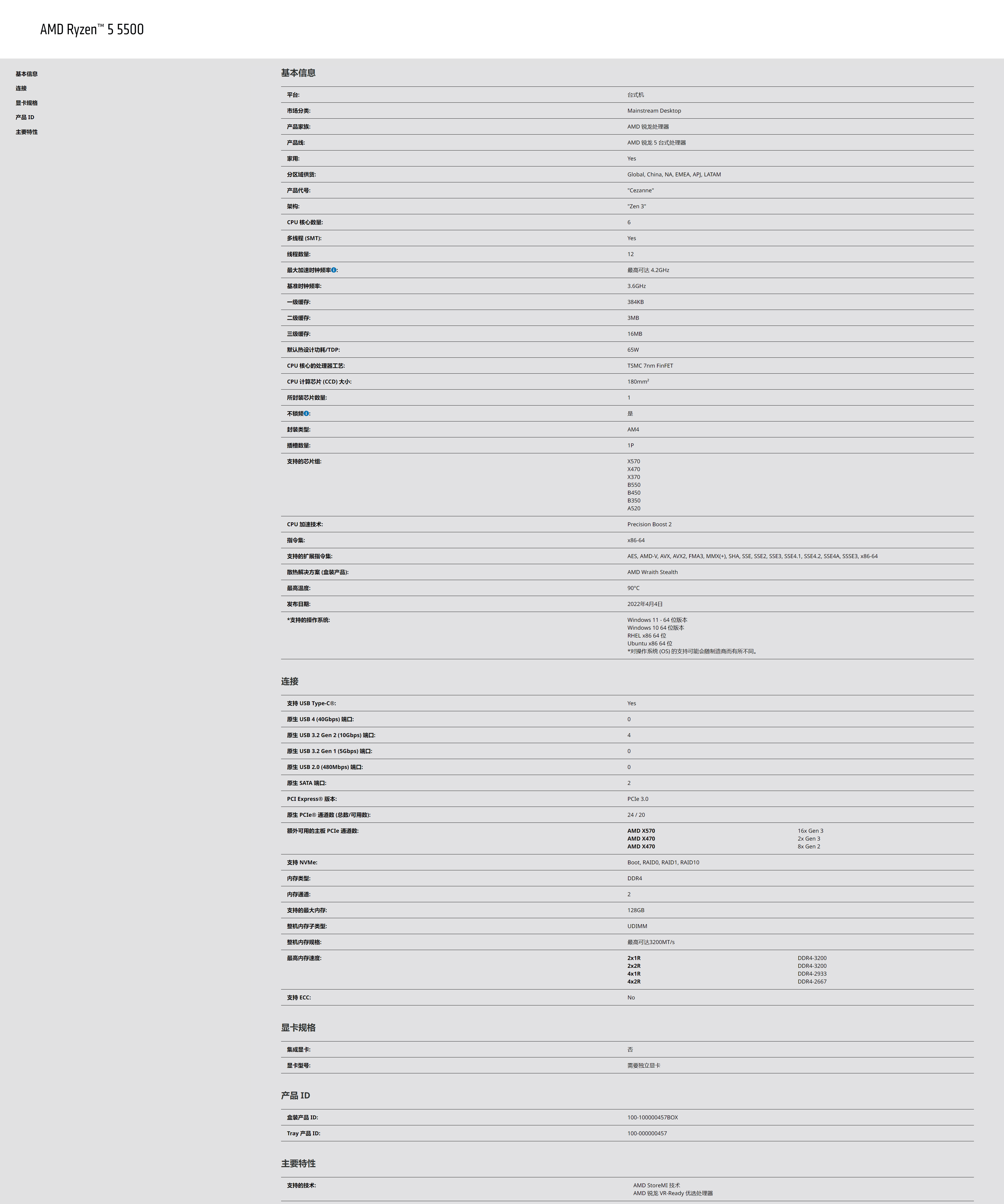 AMD Ryzen™ 5 5500 散片 处理器 CPU
